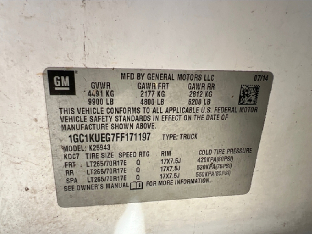 - VIN: 1GC1KUEG7FF171197