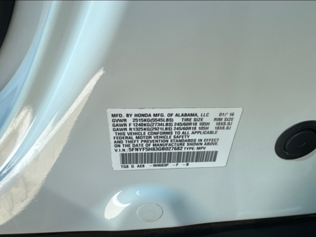 - VIN: 5FNYF5H83GB027682